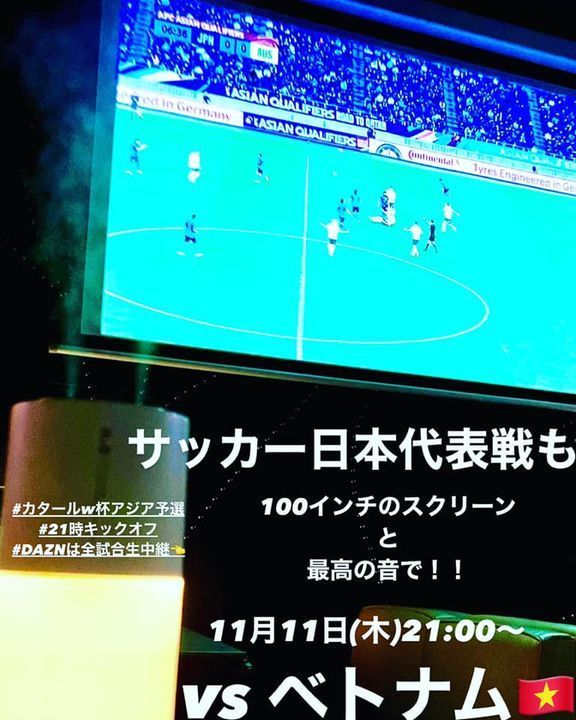 11月11日(木)21時より⚽️サッカー日本代表も100インチのスクリーンと最高の音で!!vsベトナム🇻🇳アウェイ戦はDAZNで生中継!!