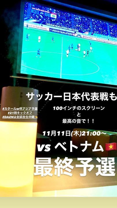 11月11日(木)21時より⚽️サッカー日本代表も100インチのスクリーンと最高の音で!!vsベトナム🇻🇳アウェイ戦はDAZNで生中継!!