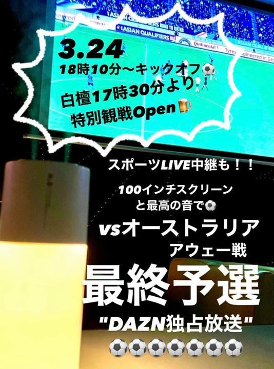⚽️サッカー日本代表も100インチのスクリーンと最高の音で!!vsオーストラリア アウェイ戦はDAZNで生中継!!