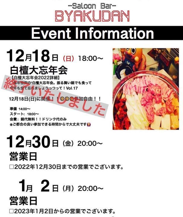 ▪️home page▶︎ https://saloon-bar-byakudan.owst.jp/