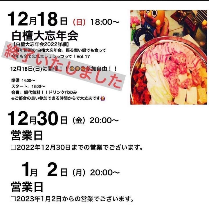 【20時Open】に変更いたしましたのでよろしくお願いします。