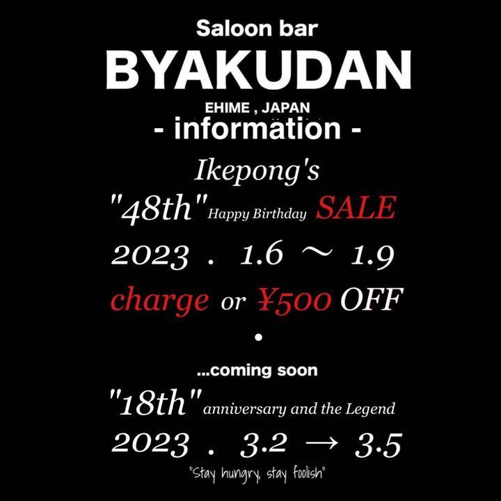 白檀マスターいけぽん誕生日を祝して1月6日から9日までの4日間、チャージ無料or飲み放題500円割引セール実施いたします㊗️是非是非、ご来店よろしくお願いいたします㊗️