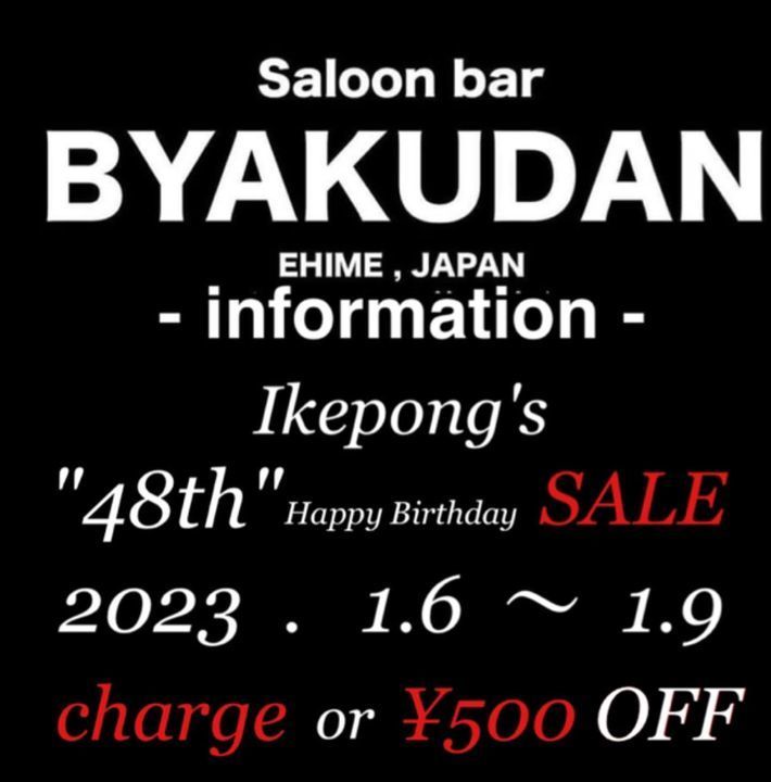 白檀マスターいけぽん誕生日を祝して1月6日から9日までの4日間、チャージ無料or飲み放題500円割引セール実施いたします㊗️是非是非、ご来店よろしくお願いいたします㊗️