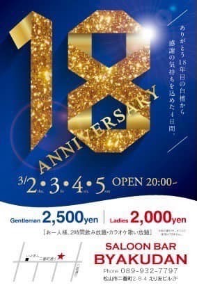 おかげさまで白檀は、2023年3月2日(水)で、18周年を迎えます。
