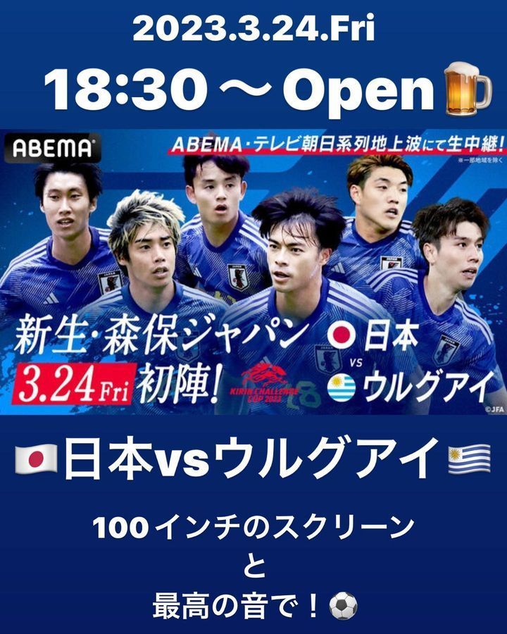 【LIVE中継予告⚽️】100インチのスクリーンと最高の音で!🔥3/24(金)18:30〜Open🍺