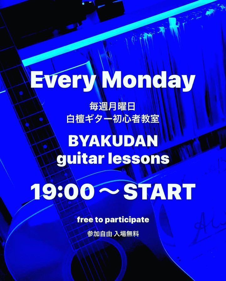 ■毎週月曜日は19時より白檀ギター初心者教室🎸入場無料の参加自由✨