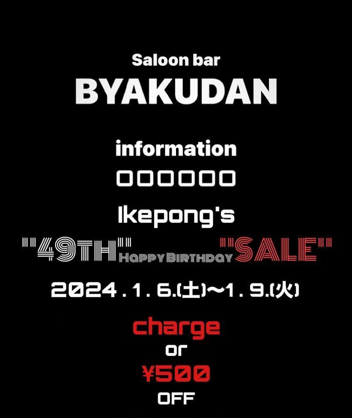 白檀マスターいけぽん誕生日を祝して1月6日から9日までの4日間、チャージ無料or飲み放題500円割引セール実施いたします㊗️是非是非、ご来店よろしくお願いいたします㊗️