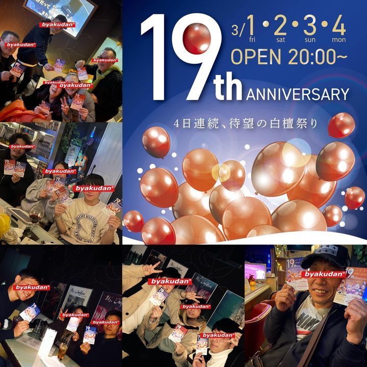 3月2日で白檀は満19周年になります!!感謝の意を込めて4月いっぱいご利用できるクーポンカード配布サービスの他、各サービスや催しイベントを開催いたしております( ′ᴗ‵ *)
